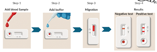 - Add 1 drop of sample (blood / serum / plasma)